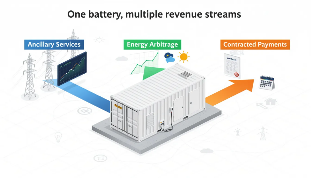 Investors like battery energy storage systems because a single asset can access multiple revenue streams. In practice, a bankable business model is one that combines ancillary services, energy arbitrage, and contracted payments where possible.