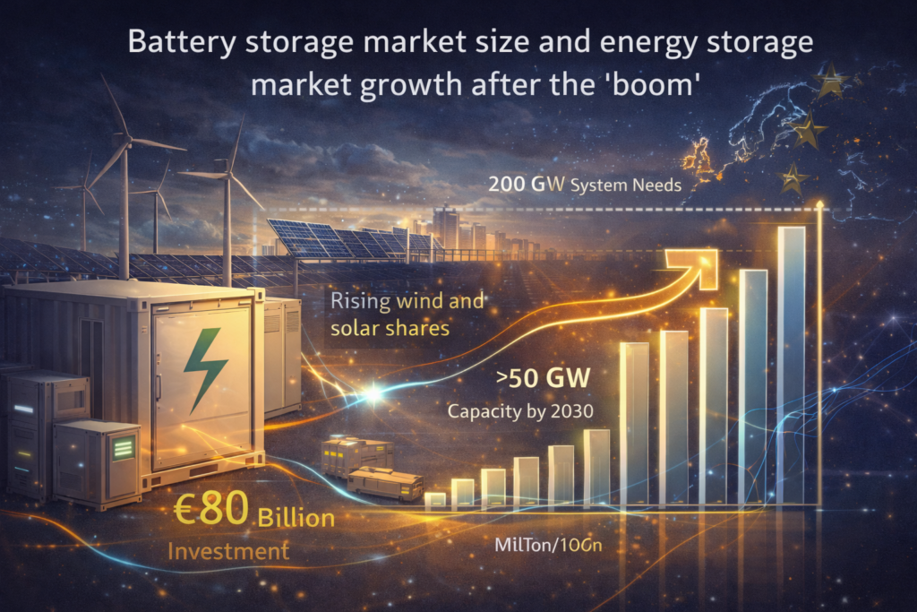 The EU “boom” in energy storage systems has moved the sector from a niche flexibility tool into a core infrastructure layer of the power system. In this new phase, the battery storage market size is no longer driven by early-mover advantage, where limited competition and high spreads supported unusually strong returns. Instead, post-“boom” market growth is shaped by structural drivers: renewable energy deployment, renewable energy integration, and the system requirement to maintain grid stability and grid reliability while meeting rising energy demands.