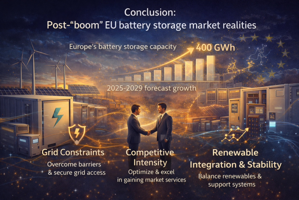 The practical takeaway for the post-“boom” EU energy storage market is straightforward: the strongest projects will be those that secure grid access, support system stability, and optimise across multiple market services as the competitive landscape matures.