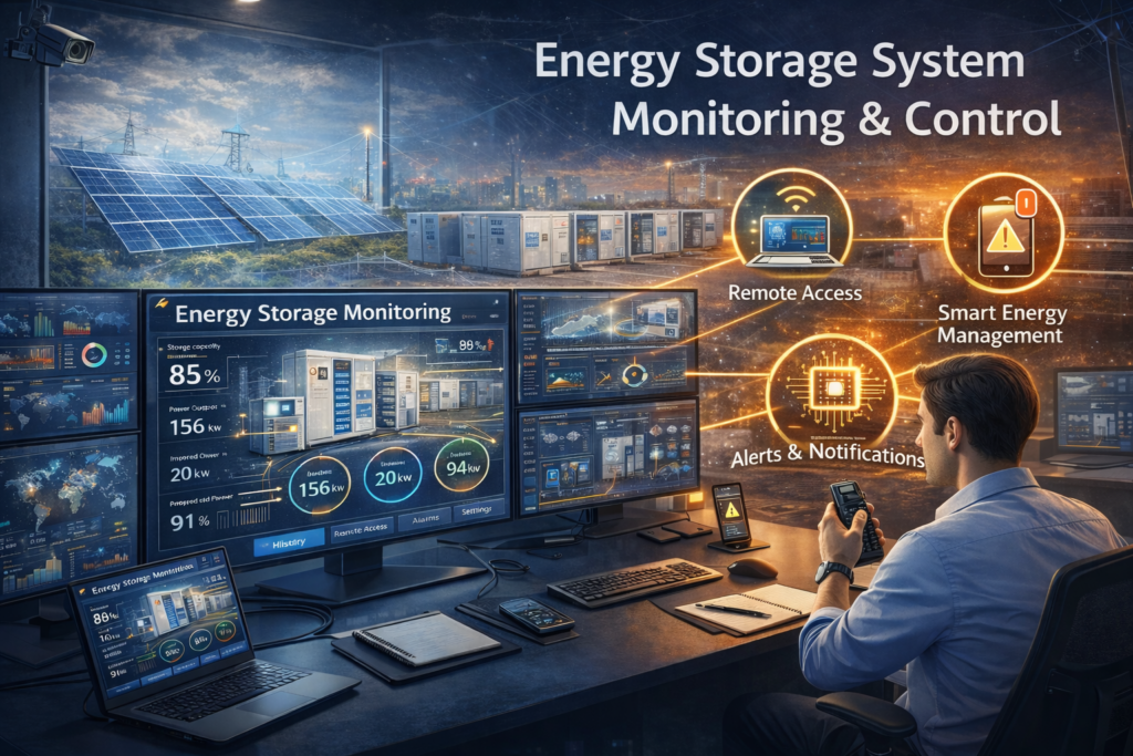 Effective monitoring and control are essential for maximizing the value of an energy storage system. Modern storage systems include advanced monitoring tools that provide real-time visibility into energy storage capacity, power output, state of charge, and system efficiency. This data allows operators to track how much stored energy is being charged, discharged, consumed on-site, or exported to the grid, and to detect anomalies early before they impact reliable performance of the entire system.