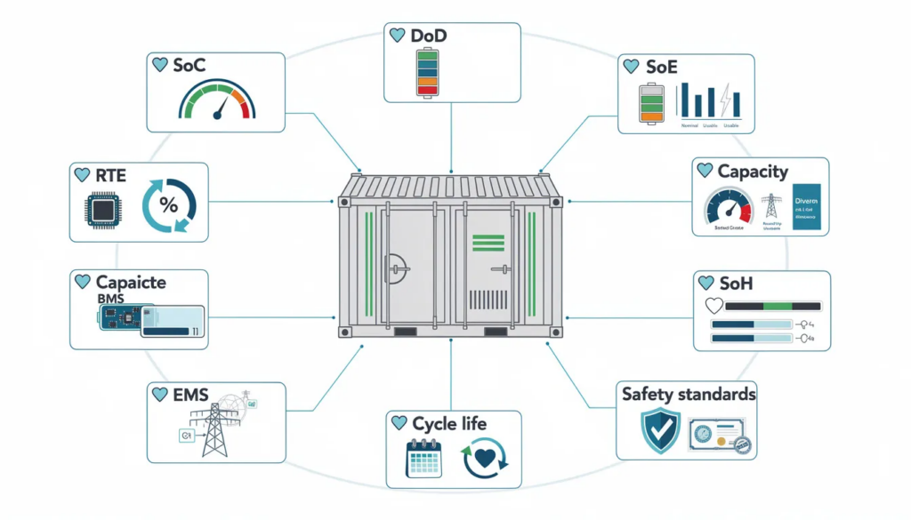 A buyer does not need to be an engineer, but must speak the same language as one. The top 10 energy storage terms define performance, warranty, and lifetime value in every commercial project. Learn them once, and you can read any battery energy storage system (BESS) datasheet or supplier pitch without guessing.